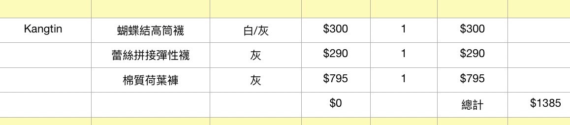 4月下單 - Kangtin